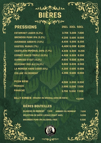 ESTAMINET LAGER (5.2%) 3.70€ 5.00€ 7.00€